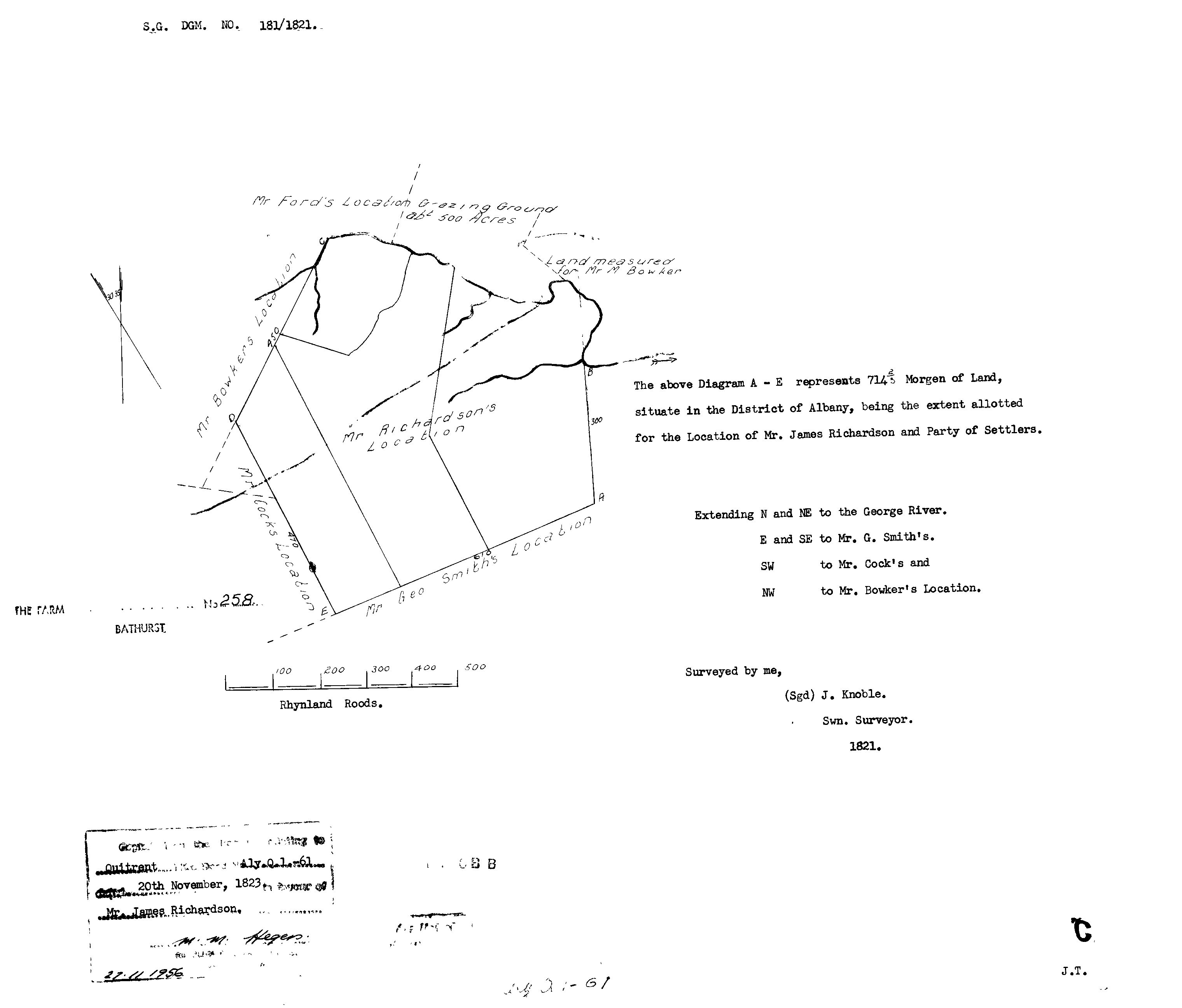1820 Settler Farm allocations